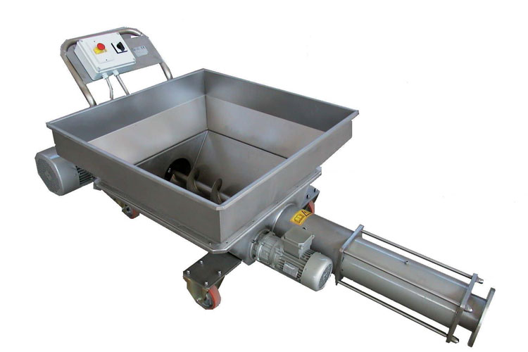 Bomba auto-cebante helicoidal de tornillo para el transporte de los orujos fermentados.